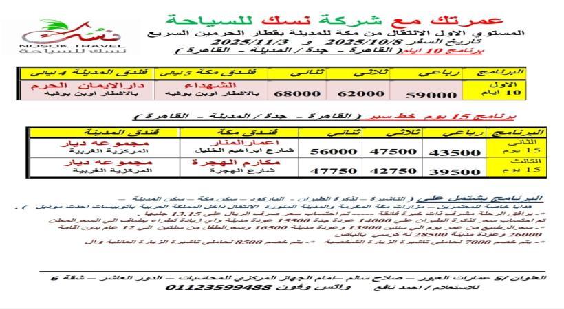 و 3/11/2025 برنامج 10 ايام( القاهرة - جدة / المدينة - القاهرة ) |